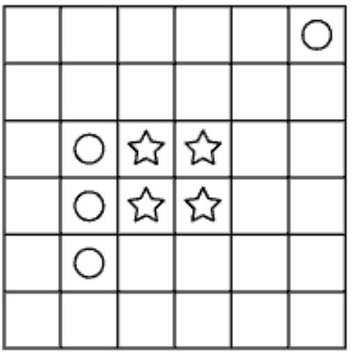 ❓Cut the given square along the cell borders into four parts so that all parts are of the same size and shape, and each part contains one circle and one star.